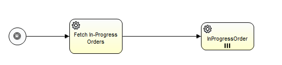 It retrieves all orders that are in ACKNOWLEDGED state and if the start date is in time it will initialize the process by settingn the order in IN_PROGRESS state. Finally the Start Order Process will start.