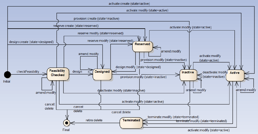 A Service follows the states as defined in TMF638 Service Inventory specification: