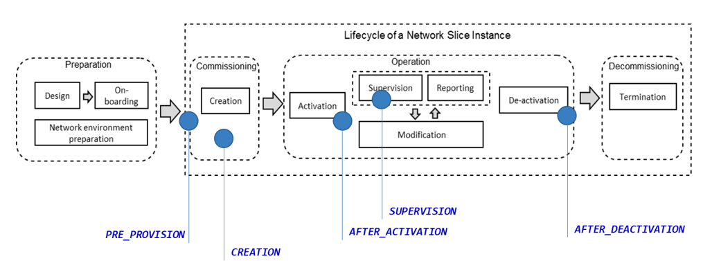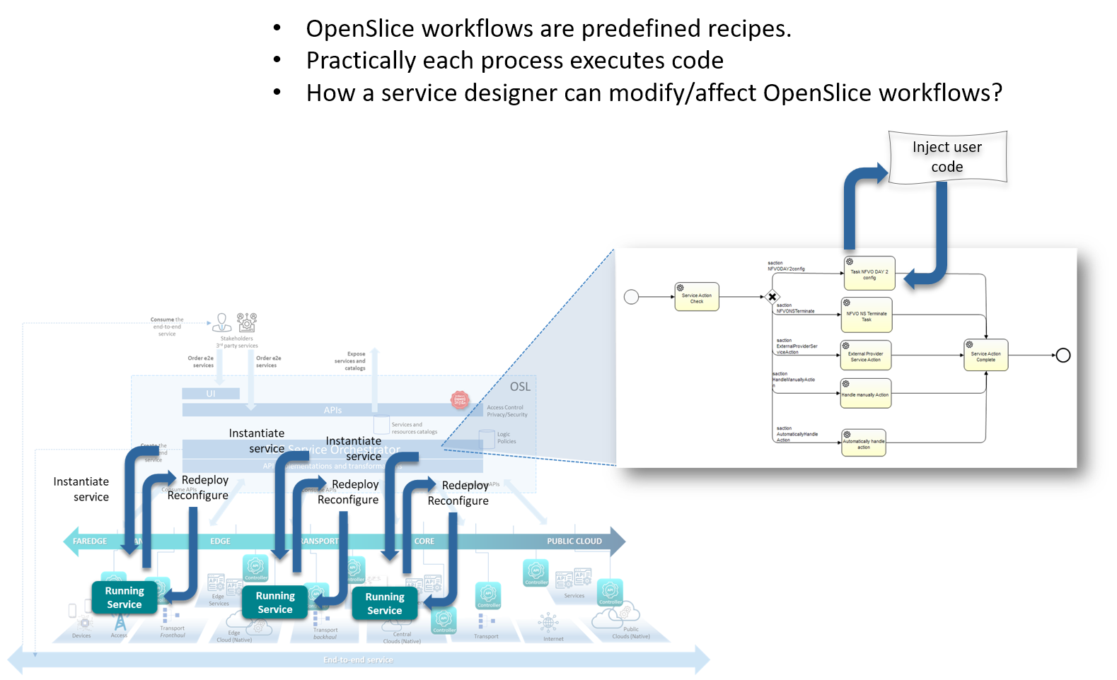 OpenSlice end-to-end (E2E) service orchestrator follows some predefined workflows to manage a service lifecycle (They are described in BPMN language and included in our orchestration engine)