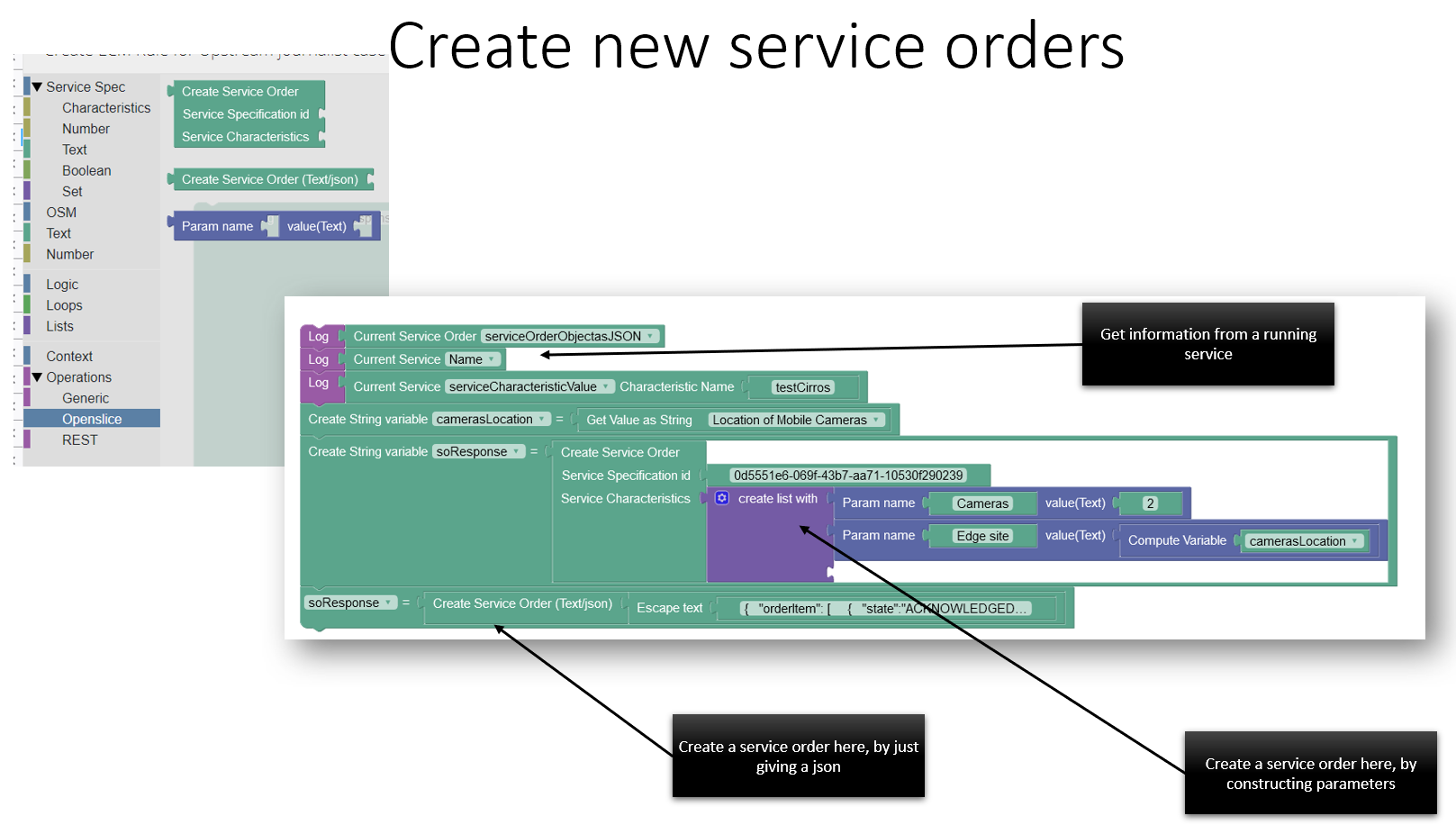 - Modify service specification parameters before the instantiation of a service (or during operation) based on other dependencies. These parameters might be part of other services already included in Service order
