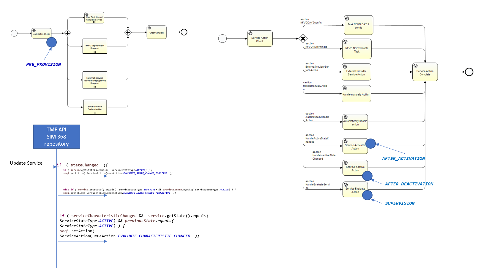 OSOM is the responsible service for executing the rules on a specific phase. The following image explains the design in the BPMN phases: